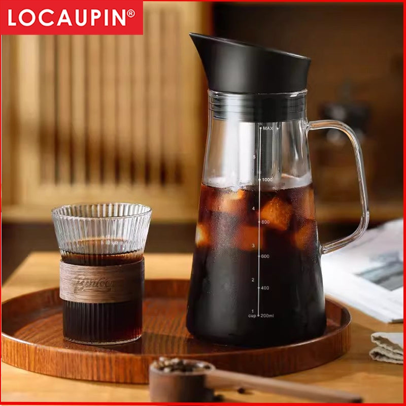 Locaupin 1200mL Coffee Maker Set , Heat Resistant Glass Carafe Hand Drip Filter Coffee Maker with Handle and Scale