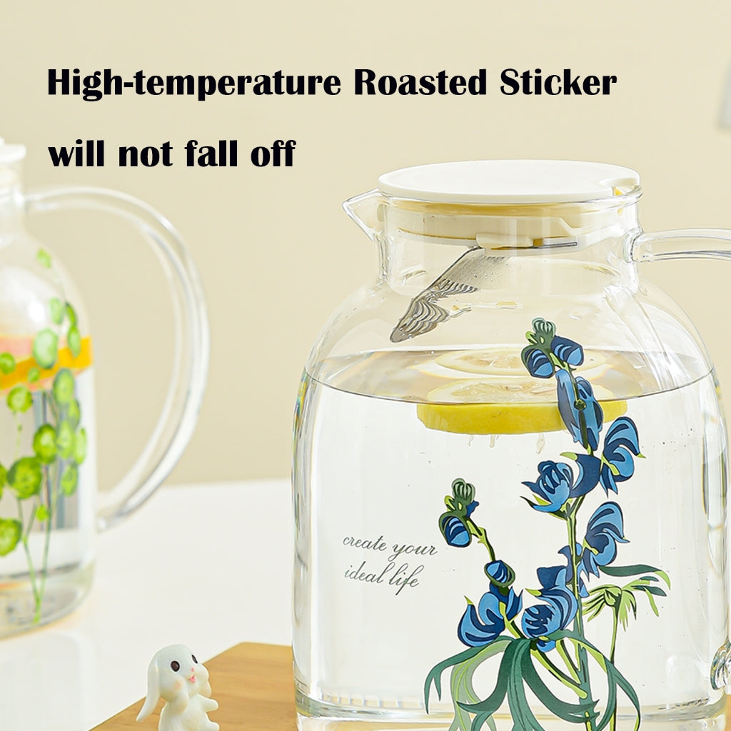Locaupin 1800mL Borosilicate Glass Bottle Pitcher Glass with Filter,Microwave Safe High Temperature Tea Cups Teapot