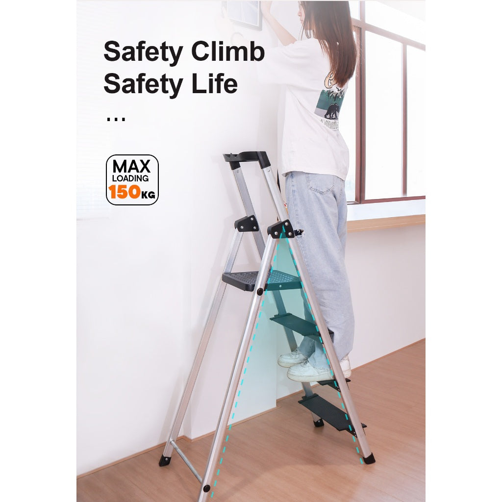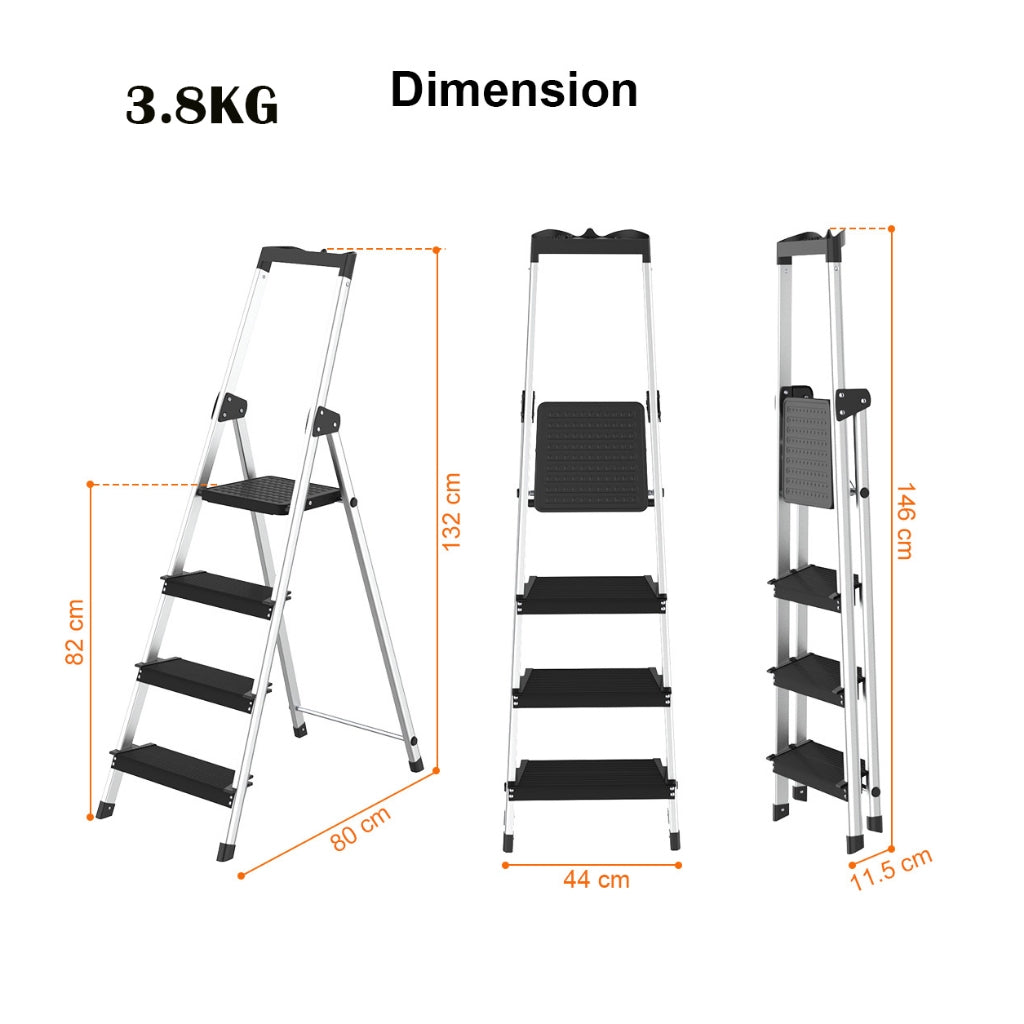 🍀🍀Load Capacity: with good product quality and safety, Carry a load capacity of 150 kg. Aluminum ladder will held up well to repeated use. Ideal for your home and shop!