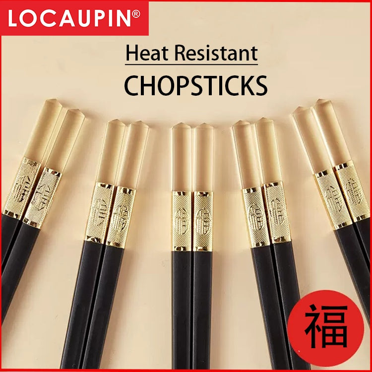 Locaupin 5 Pairs Reusable Chopsticks Dishwasher Safe,Fiberglass Chopsticks Set, Non-Slip, Easy to Use
