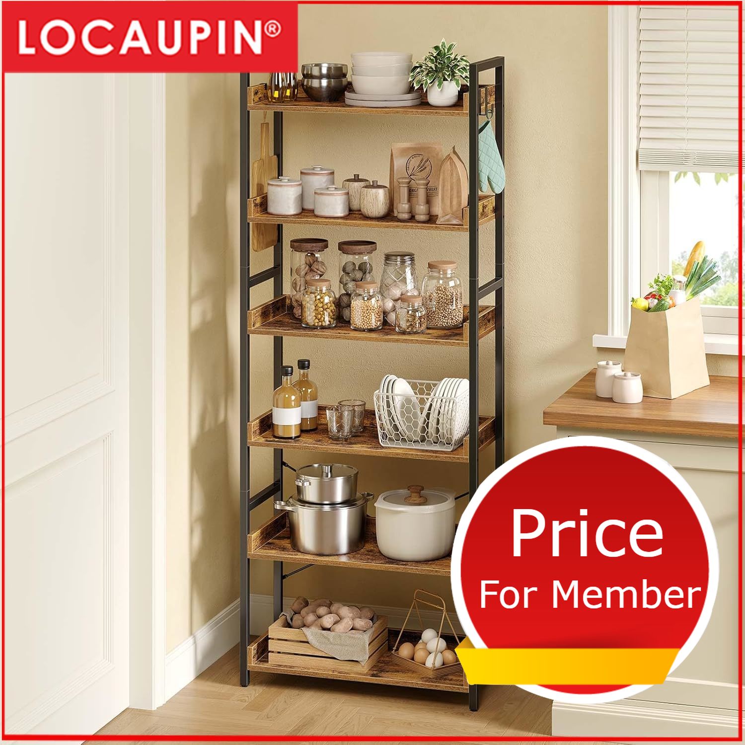 Locaupin Bookshelf 5 Tier – Industrial Vintage Metal Bookcase,Display Standing Shelf