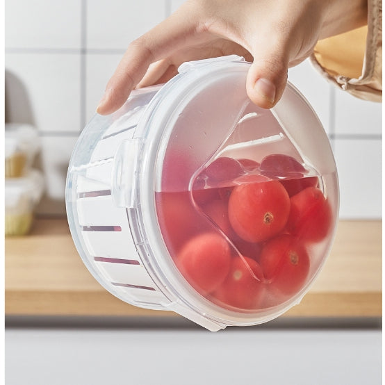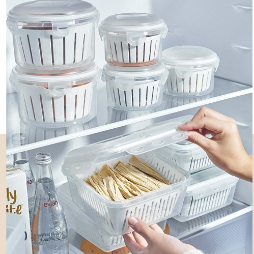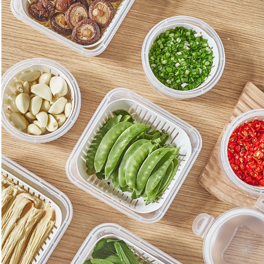 2.DRAIN BASKET DESIGN:The built-in drain basket can directly wash vegetables and fruits, to filter out the water on the surface of vegetables and fruits and reduces spoilage; Can be combined to improve the space utilization of the refrigerator.