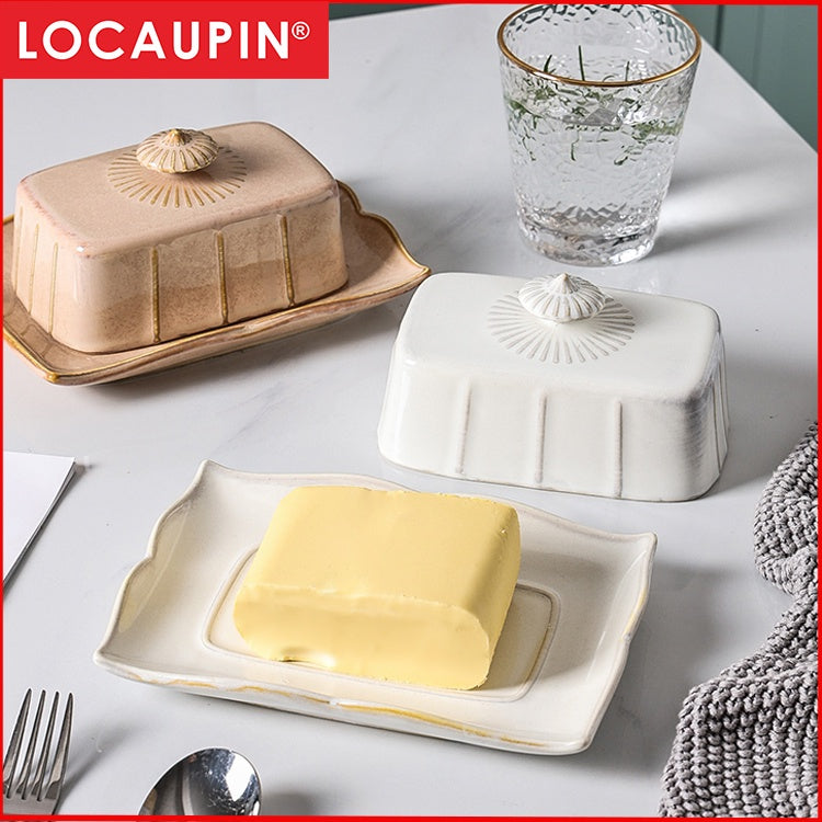 Locaupin Butter Dish with Lid Large Ceramic Butter Storage Container Keeper for Refrigerator with Butter Knife