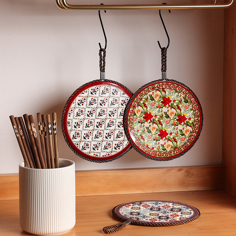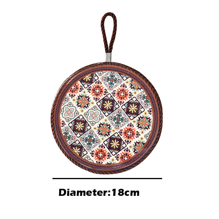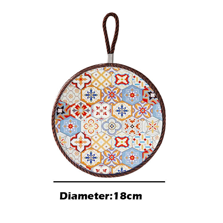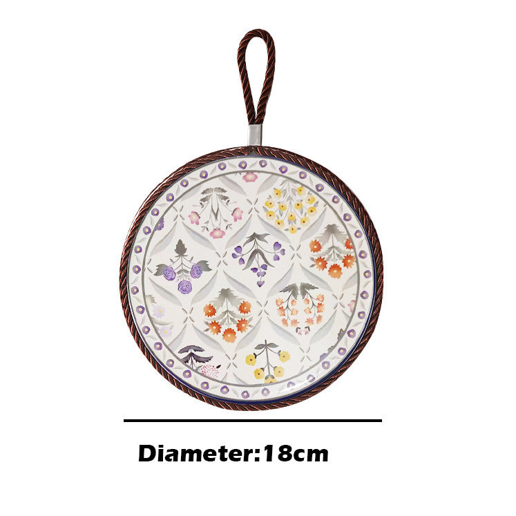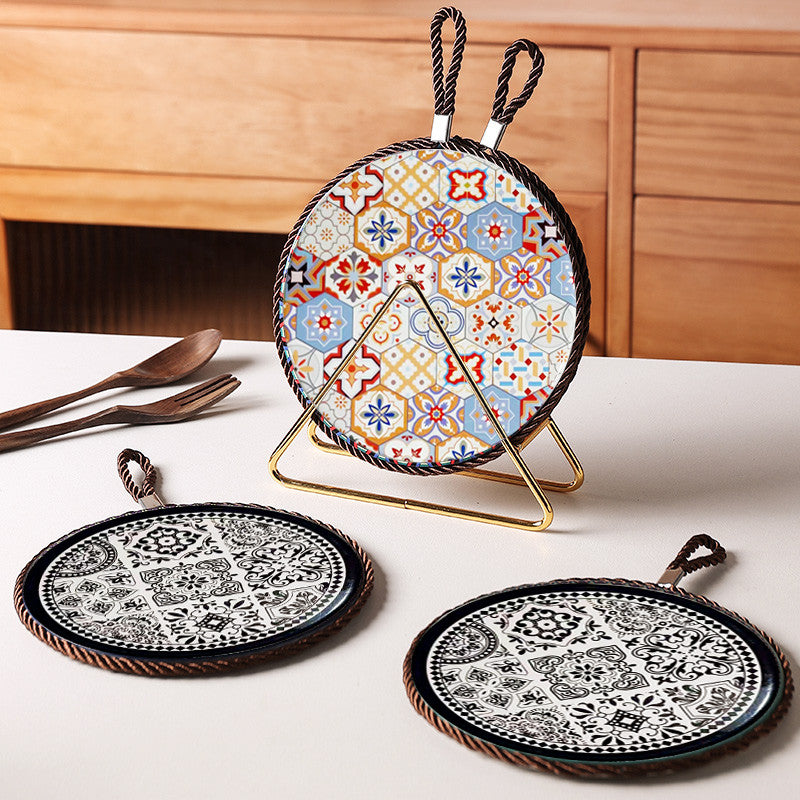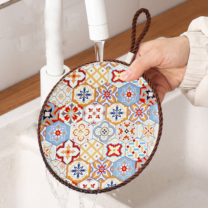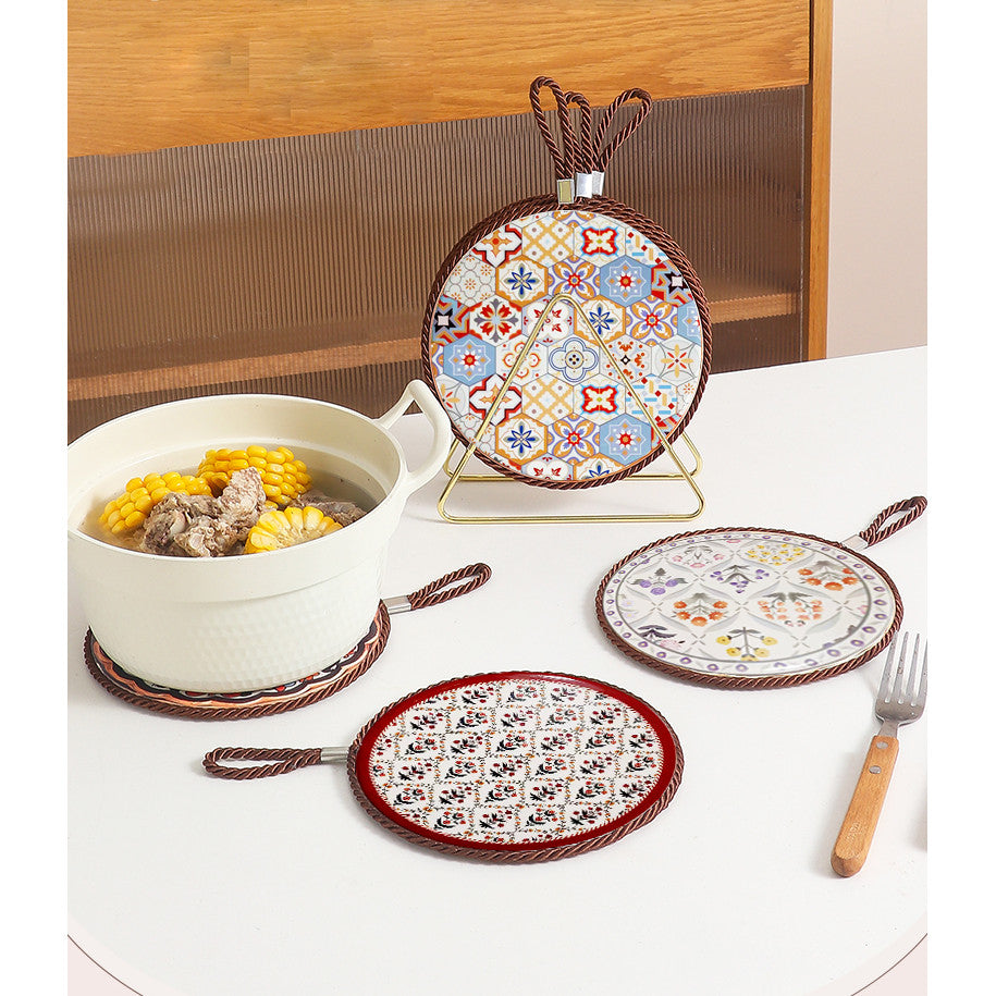 This ceramic and cork heat pad is designed for kitchen and dining use. The ceramic surface is heat-resistant and easy to clean, while the cork base prevents slipping and protects your table from heat damage.