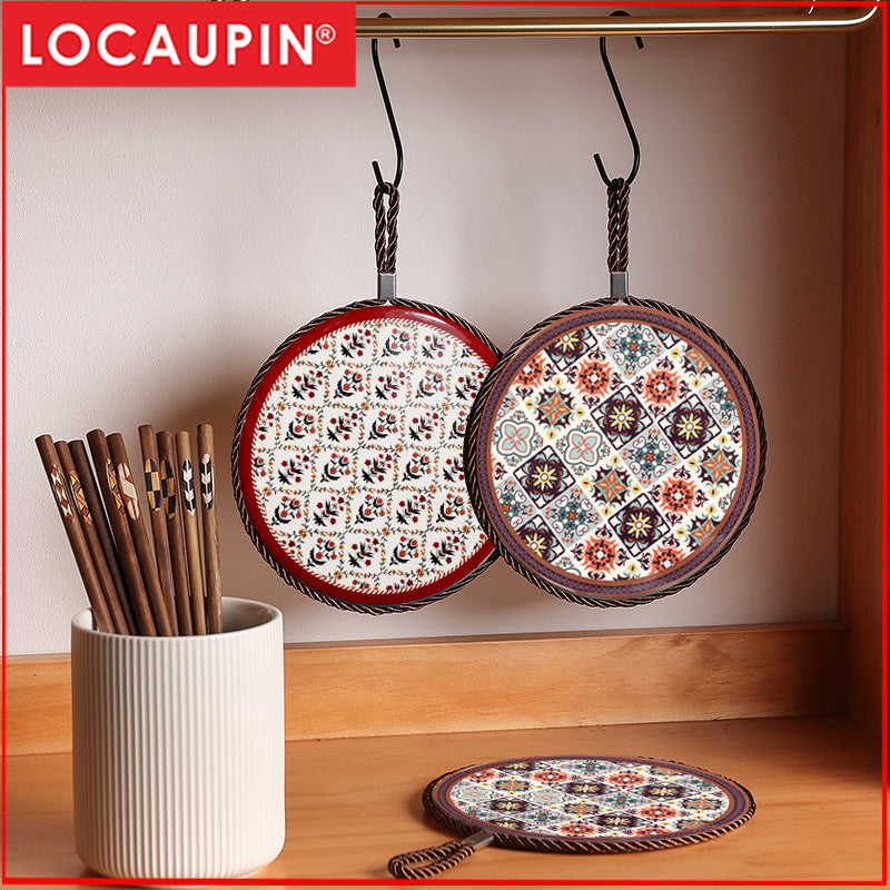 Locaupin Ceramic Heat Insulation Pad | Cork Non-Slip Base | Kitchen Hot Pot Mat