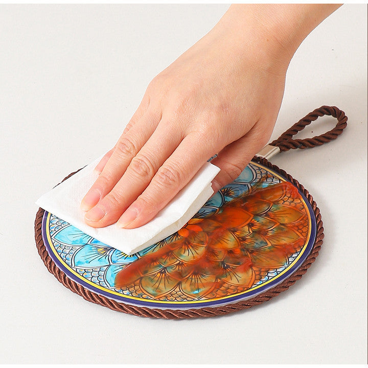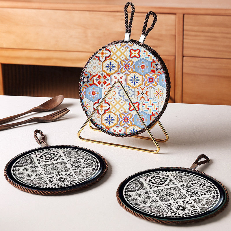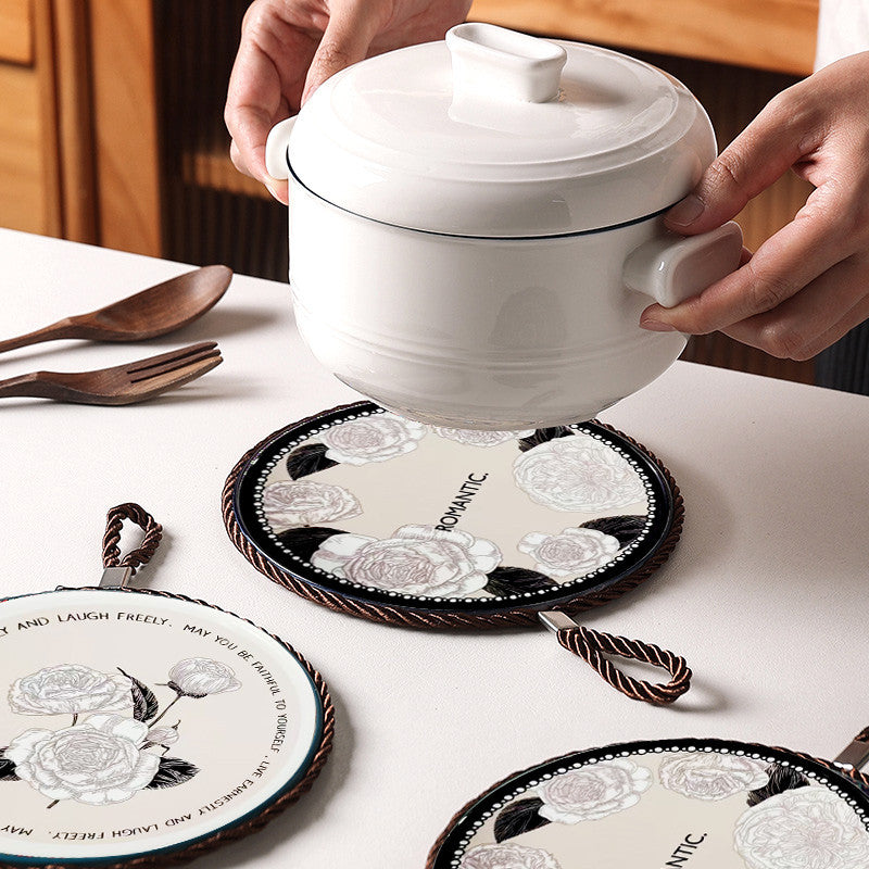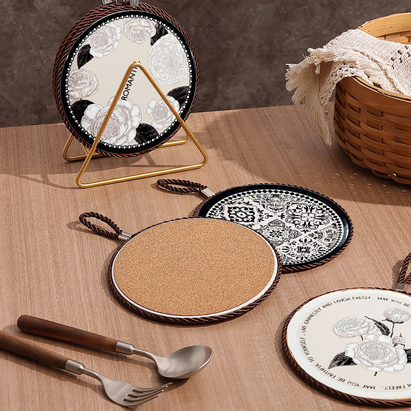 This ceramic and cork heat pad is designed for kitchen and dining use. The ceramic surface is heat-resistant and easy to clean, while the cork base prevents slipping and protects your table from heat damage.