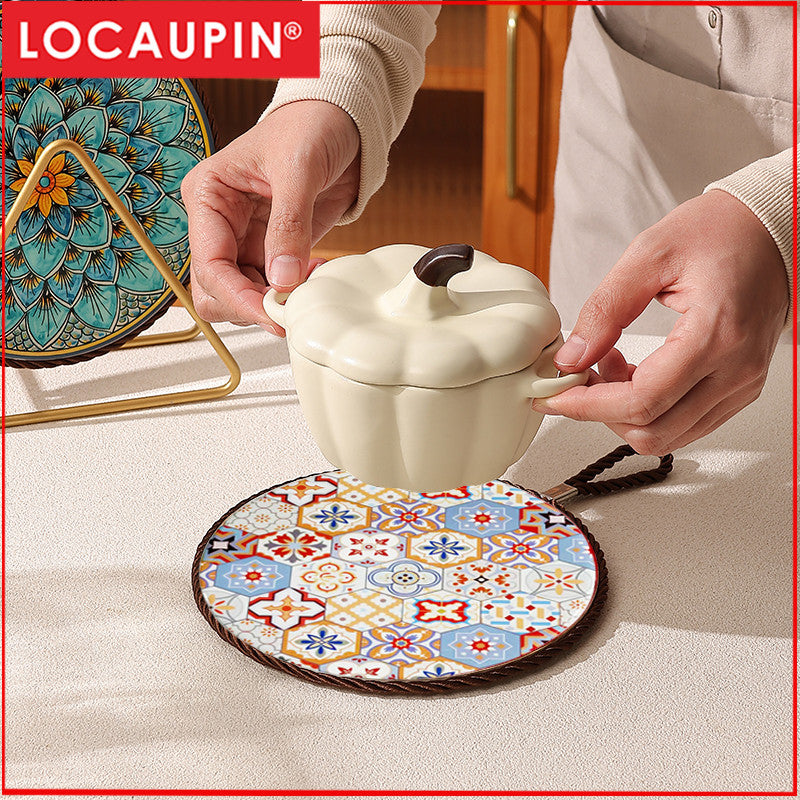 Locaupin Ceramic Heat Insulation Pad | Cork Non-Slip Base | Kitchen Hot Pot Mat