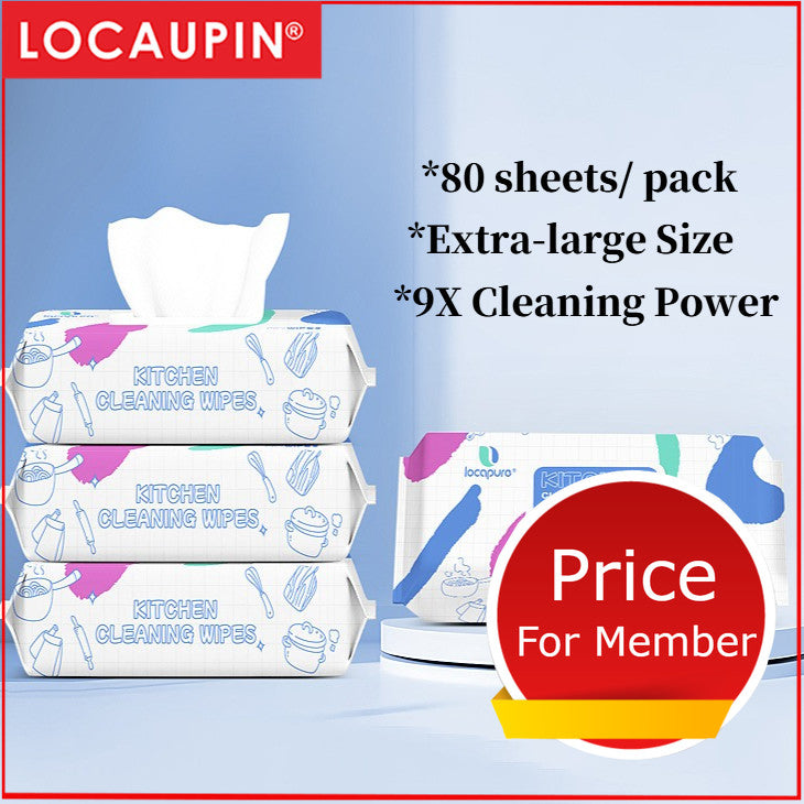 Locaupin Extra-large 80Sheet Kitchen Cleaning Wipes | Orange Oil | 9X Degreasing Power | Rich Foam | Gentle on Hands