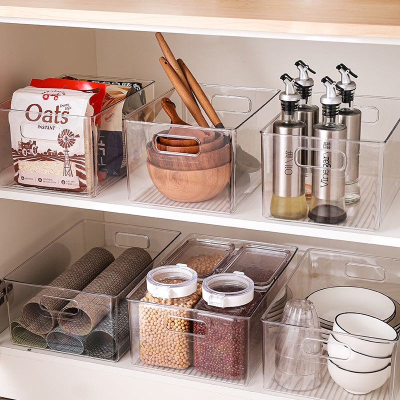 Locaupin Food Storage Bins with Handles for Kitchen Pantry, Cabinet, Refrigerator, Freezer-Organizer Books Storage