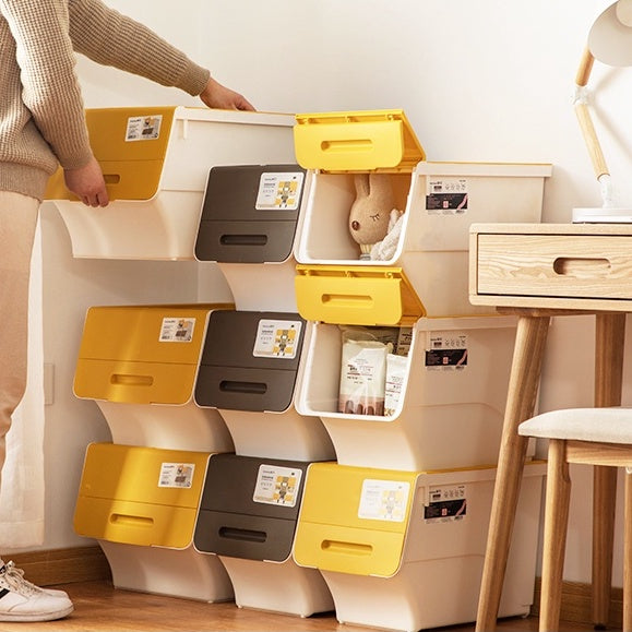 🍀🍀FRONT LID FOR EASY ACCESS: This stackable storage unit comes with front doors so you can have an overview of the inside contents; the lid can also stay open so you can easily grab what you need.