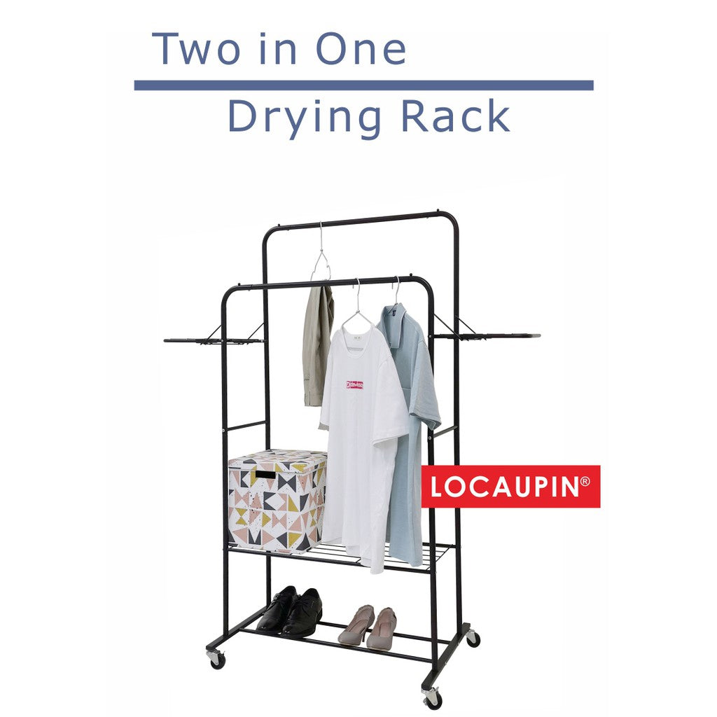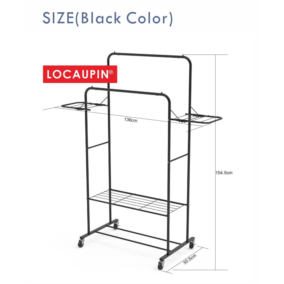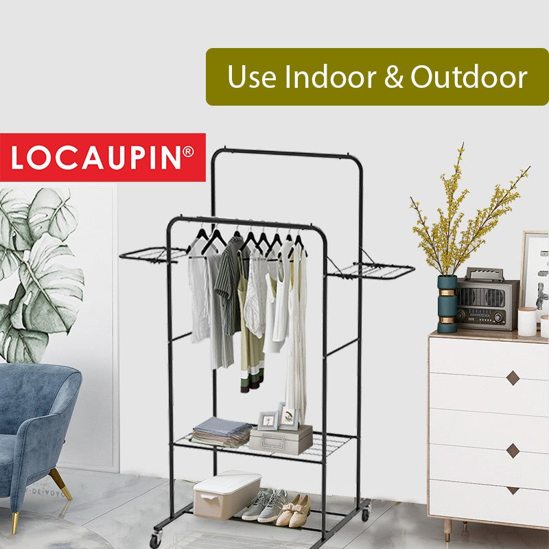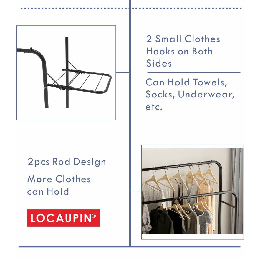 Locaupin Indoor & Outdoor Garment Rack Freestanding Hanger Double Pole Multi-functional Bedroom Clothing Rack