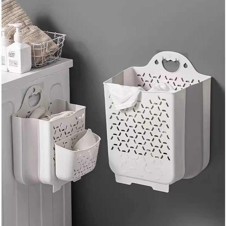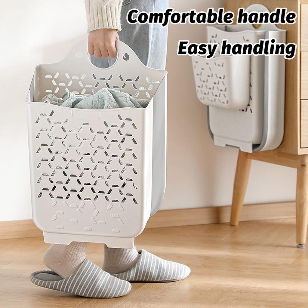 【Easy to Use 】 Wall mount laundry basket with handles making it portable and easy to move.Small hanging laundry hamper has convenient hanging feature.Soft,flexible handles make bathroom hamper easy to grab with one hand.If wall mount laundry hamper collapsible is dirty,just rinse the plastic hamper with water or wipe the small laundry basket plastic with a wet cloth