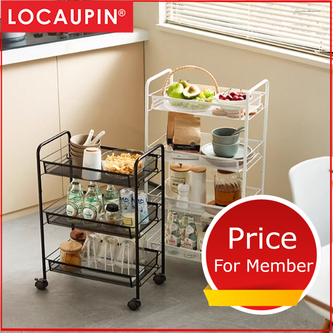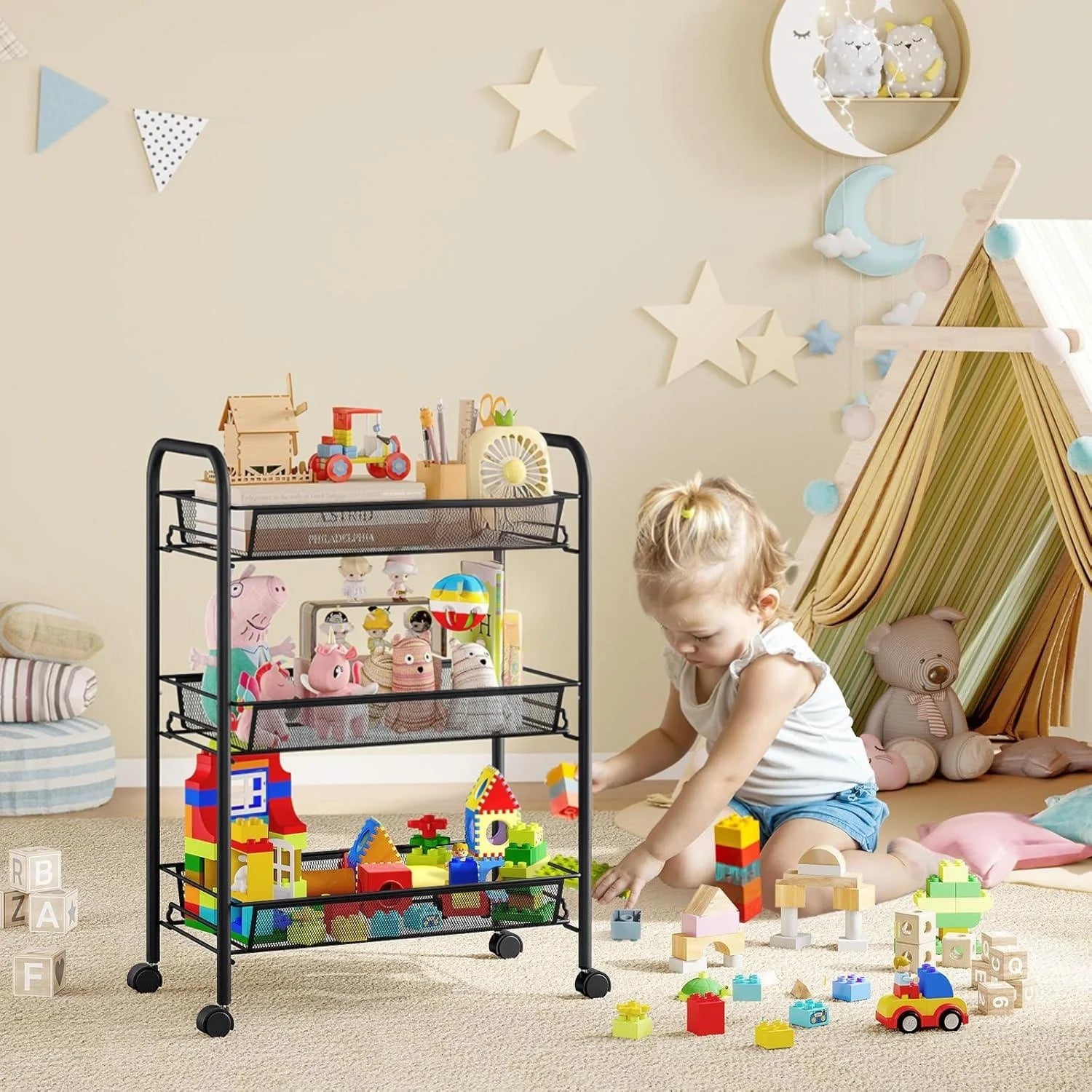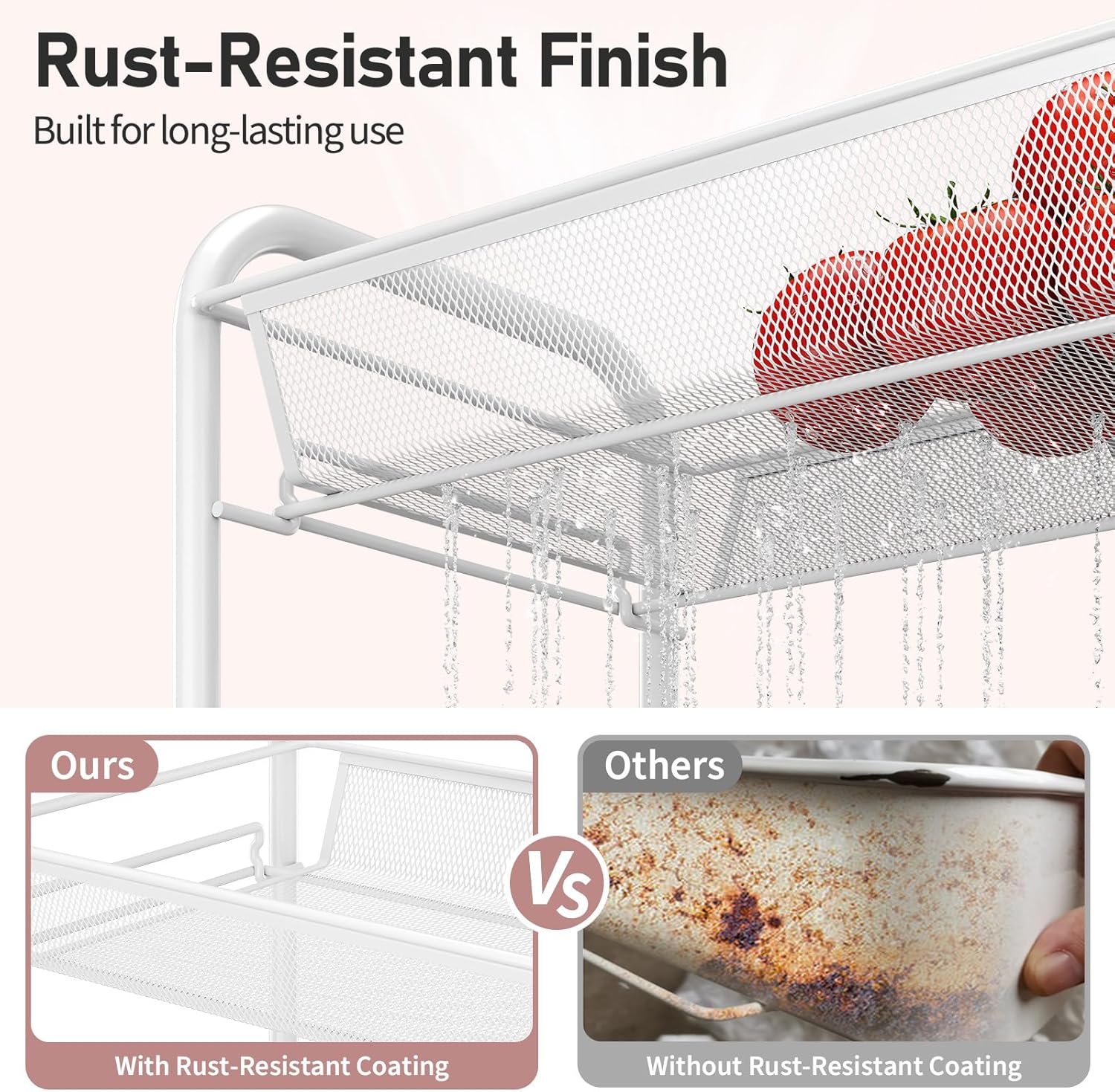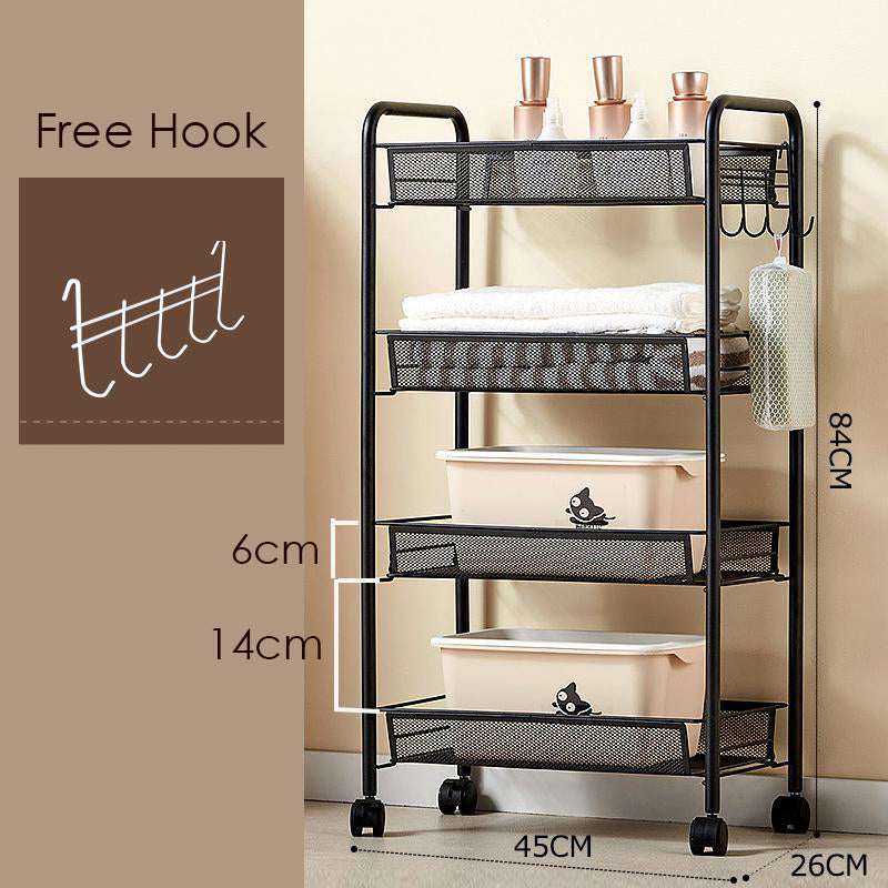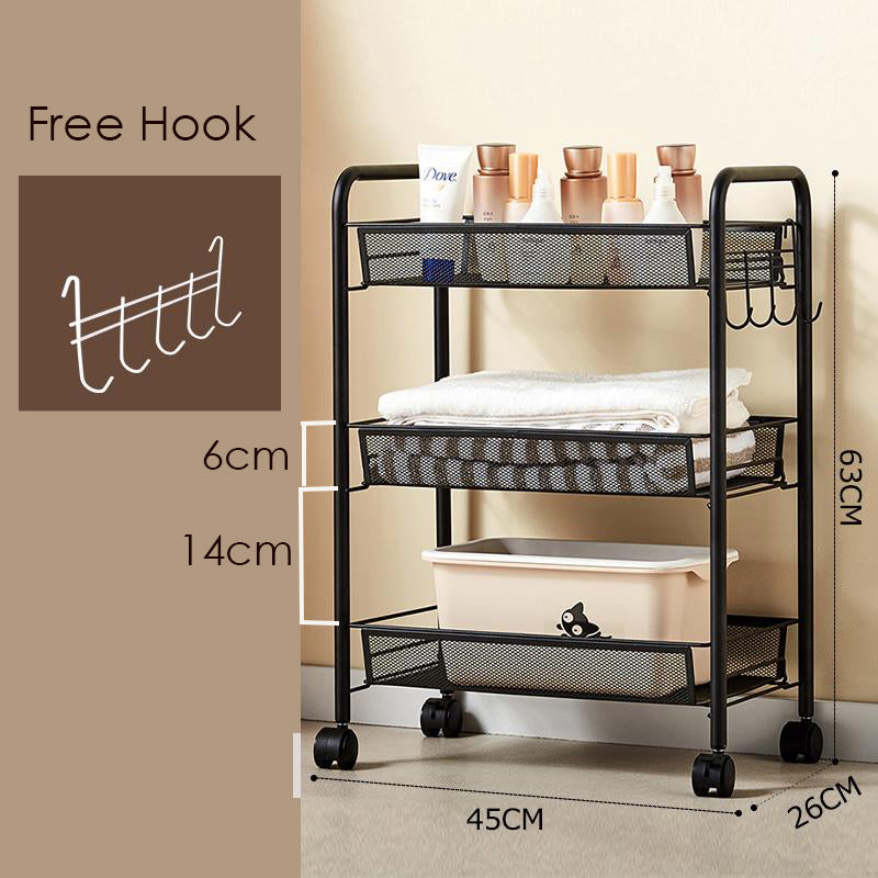 Built with premium thickened baskets and reinforced round tubes, our cart boasts a wear-resistant and abrasion-resistant coating that ensures long-lasting stability. Each tier supports up to 10kg (22lbs) of weight for reliable everyday use.