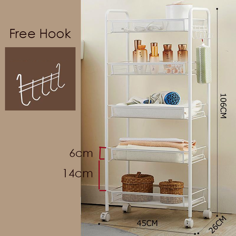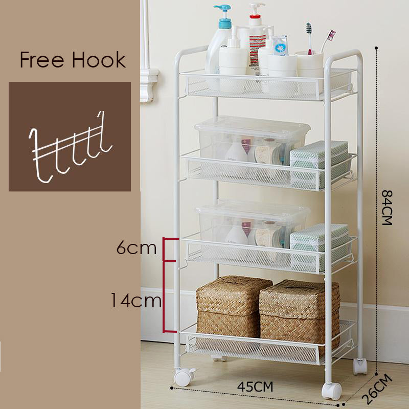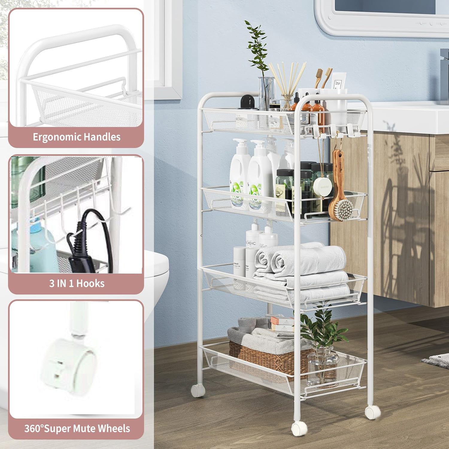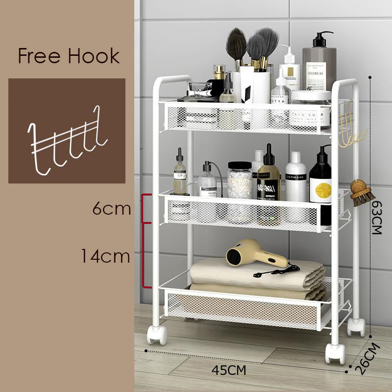 This versatile rolling cart features 360° swivel wheels, making it the perfect organizational solution for all your storage needs. Ideal for use in kitchens, living rooms, bedrooms, bathrooms, offices, craft rooms, garages, guest rooms, warehouses, pantries, and more.