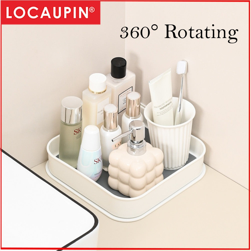 Locaupin Plastic Rotating Storage Organizer - 360° Spin, Removable Dividers, Tall Design for Kitchen/Bathroom/Office