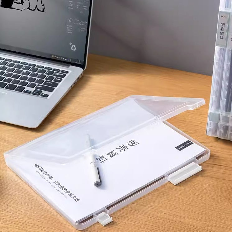Locaupin Portable Project Case A4 File Box Document Plastic Storage Box with Buckle Paper Case Board Storage Containers