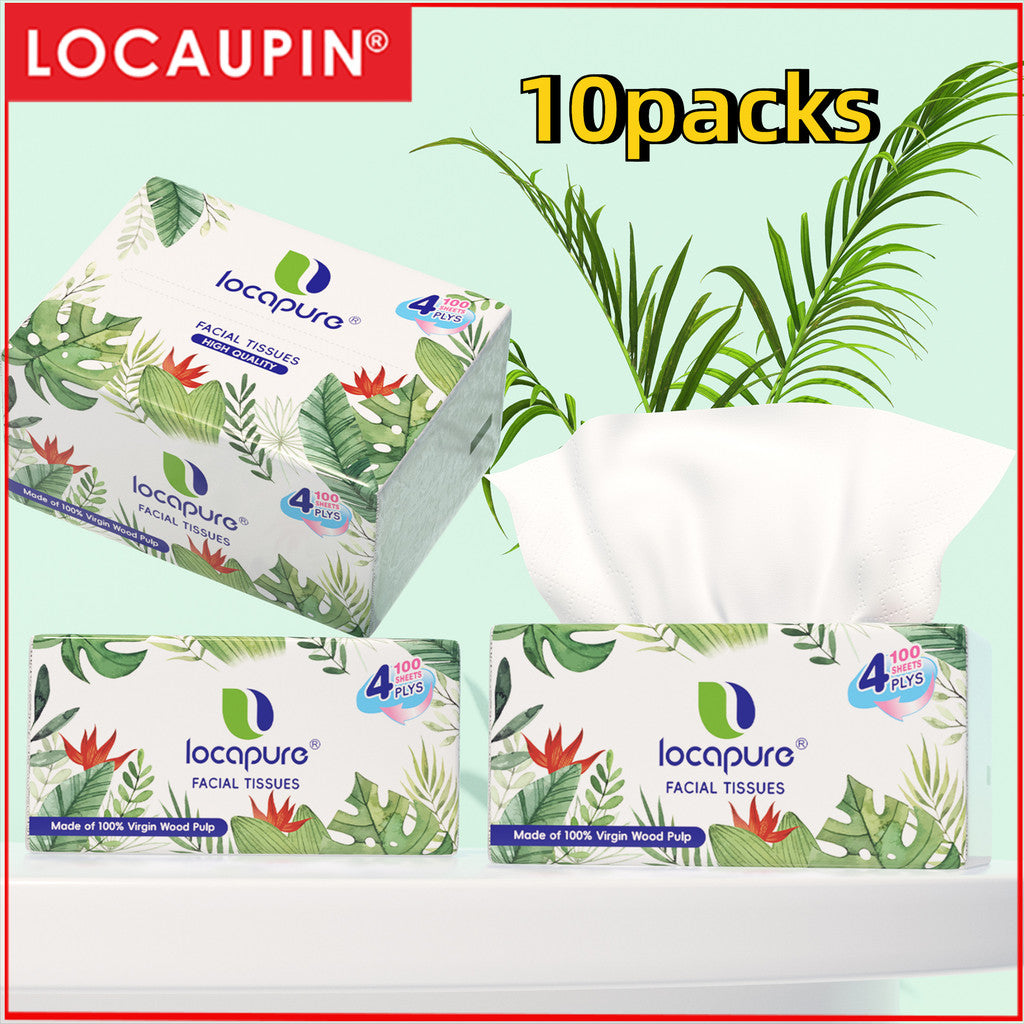 Locaupin Premium 10pack Facial Tissues 4Ply Natural Facial Paper