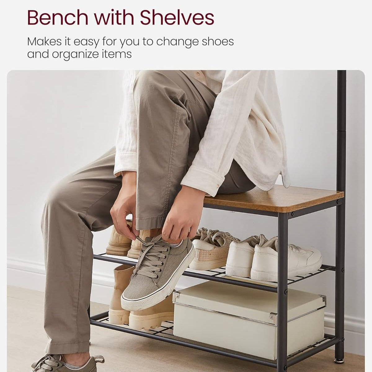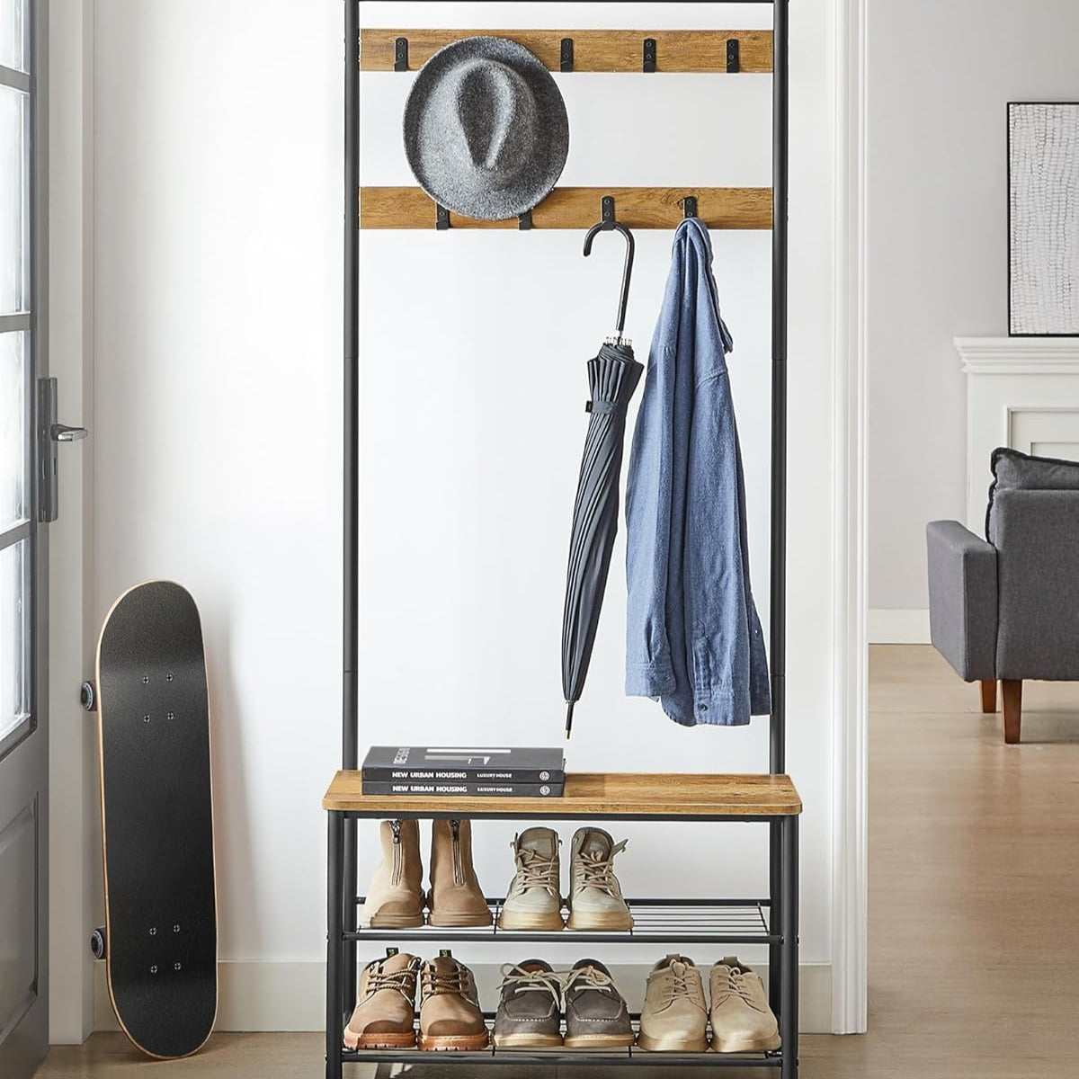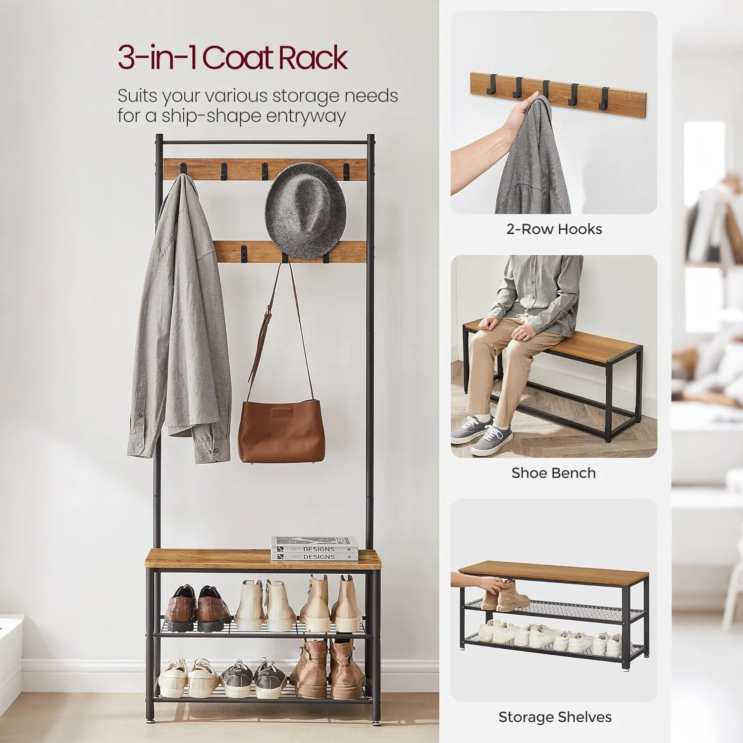 ✅ 3-in-1 Multifunctional Design - Combining coat rack, shoe bench and storage ottoman for space efficiency