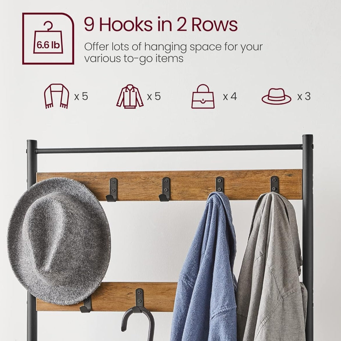 ✅ Versatile 6-Hook System - Perfect for coats, bags, scarves, hats and keychains