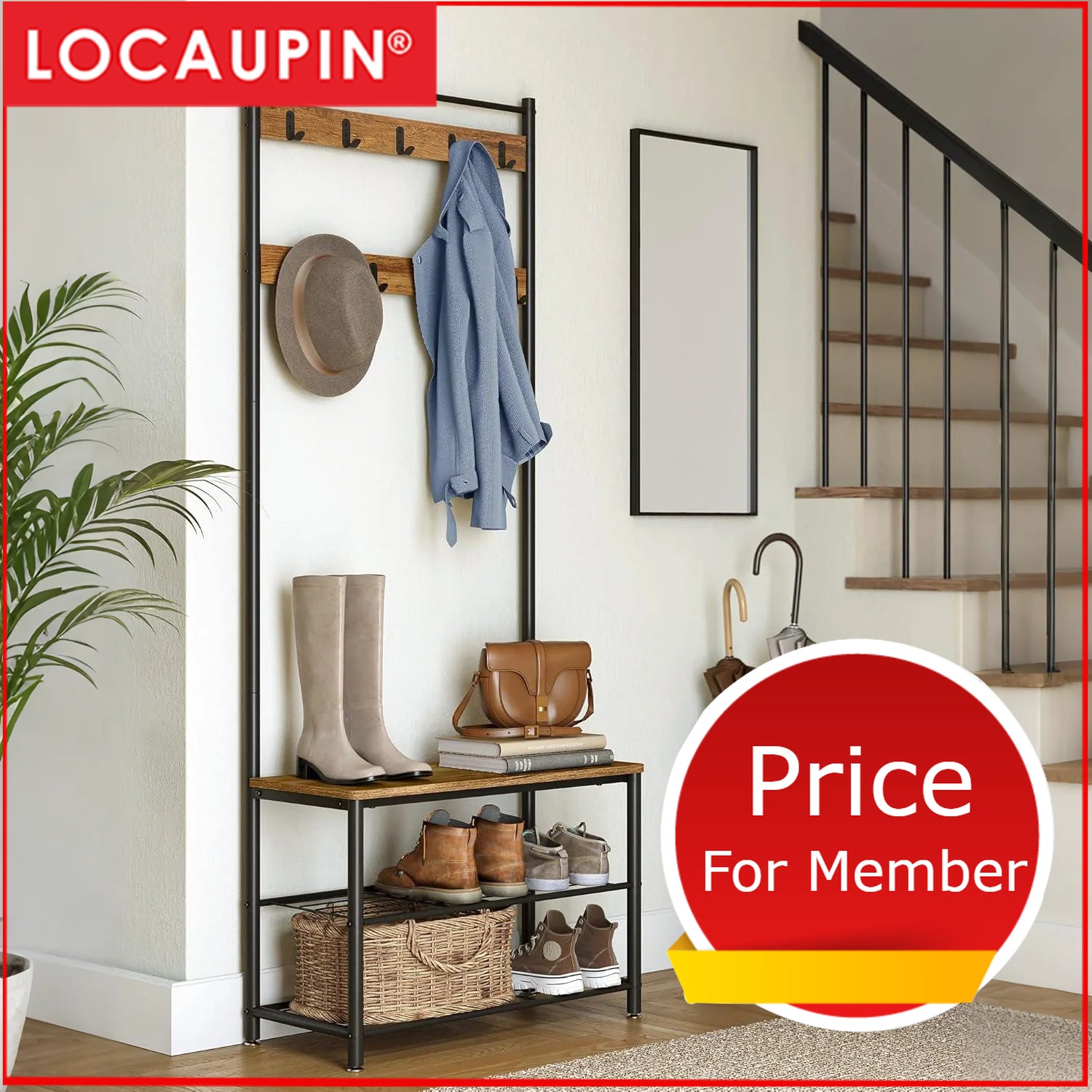 Locaupin Premium Entryway Organizer - Multi-Functional Hall Tree with Coat Racks & Shoe Storage Bench