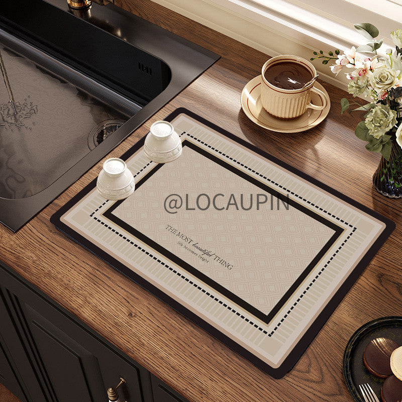 Locaupin PU Leather Dish Drying Mat l Non-Slip l Anti-slip surface l Fast Absorption l Easy to Clean