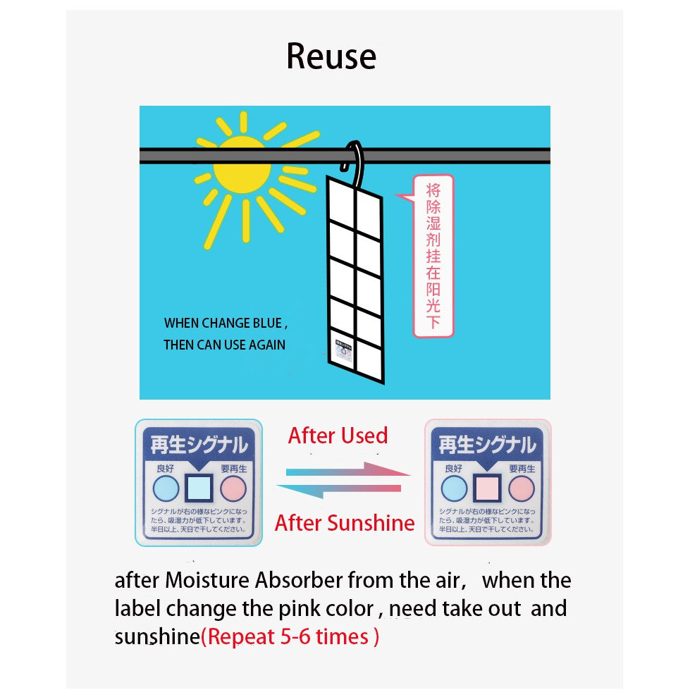 ✅Think of it as a dehumidifier without electricity. reusable 5-6times depending on temperature and humidity.