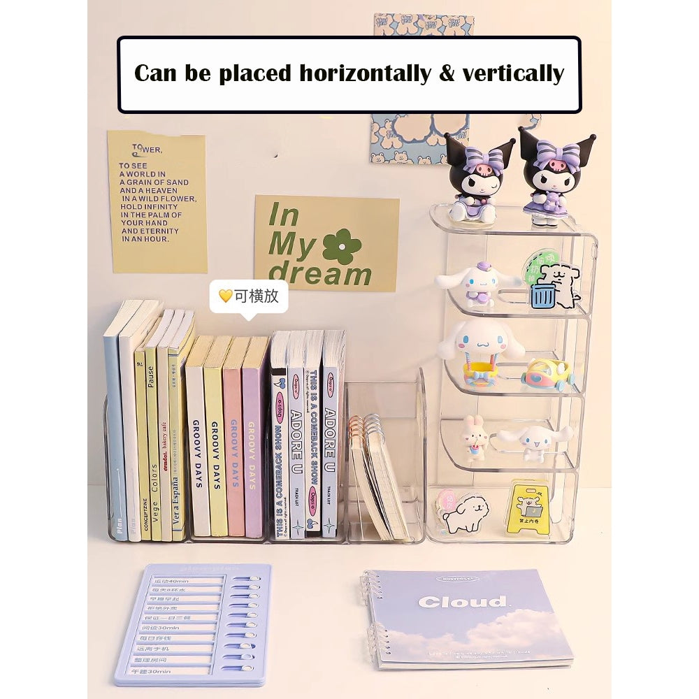 【Premium Material】This desk bookshelf is made of 100% premium pp, which is sturdy and durable. These are designed to hold books vertically in a neat row, allowing easy access to their spines. They save horizontal space on your desk.