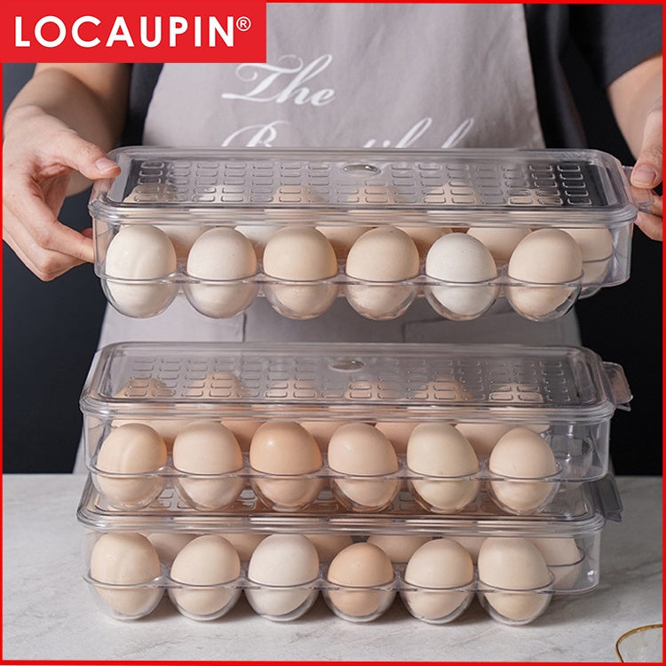 Locaupin Stackable Refrigerator 18/34pcs Eggs Storage Box Eggs Dispensers Egg Storage Bin With Lid