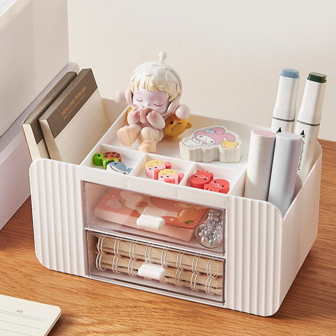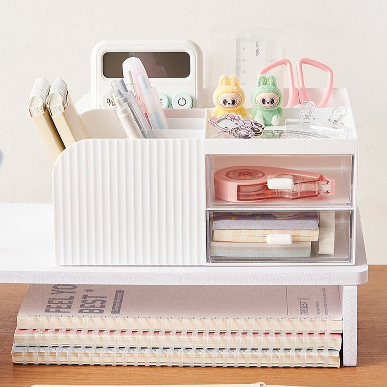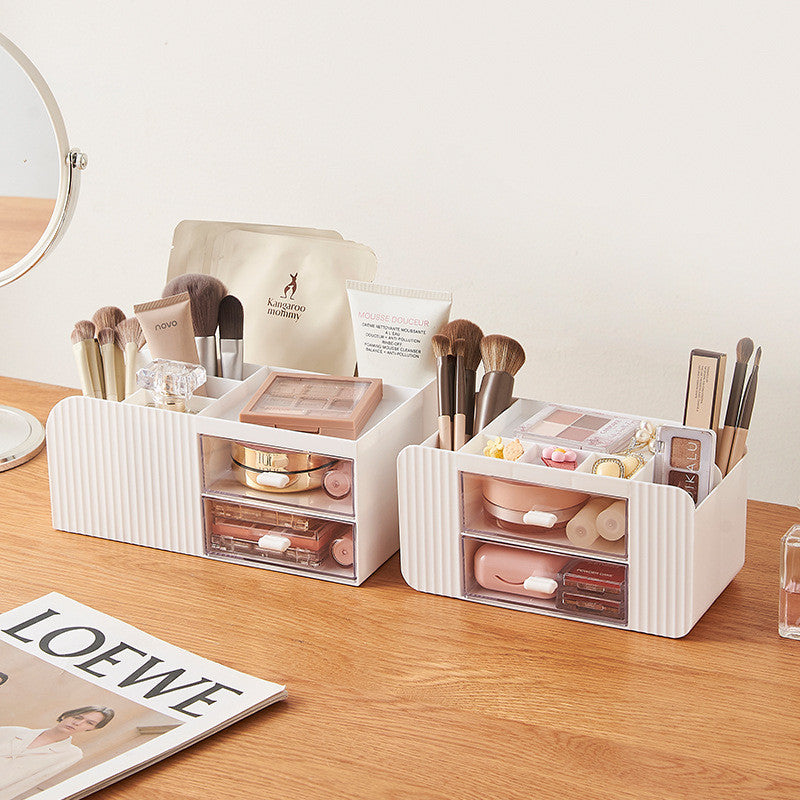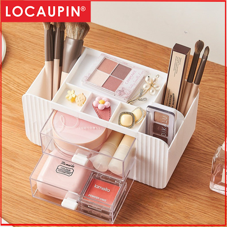 Locaupin white Desktop Organizer ,Makeup Organizer with Brush Holder Clear Drawer, for Small Tools Storage